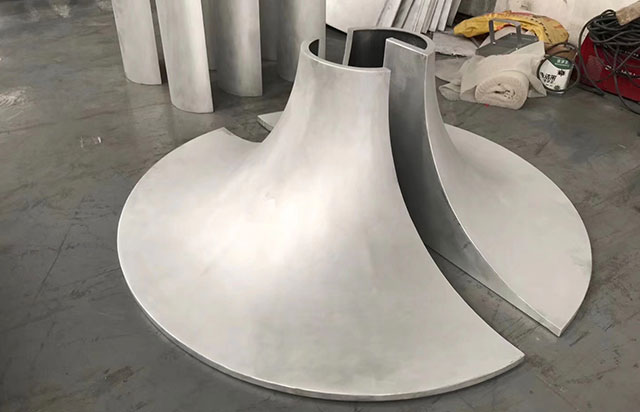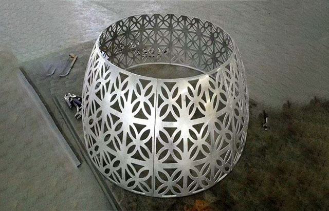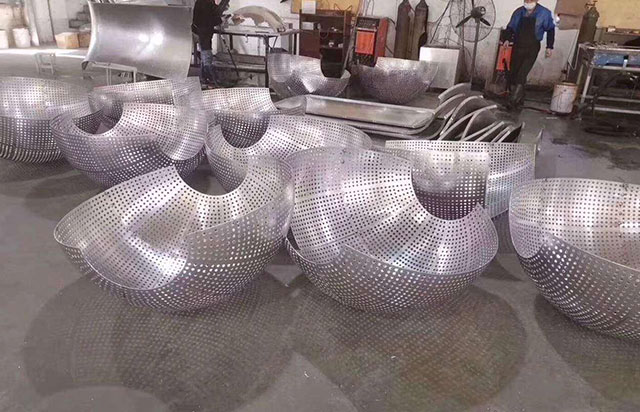 双曲板的加工工艺分两大部分,第 一部钣金加工,根据图纸的设计对双曲铝单板的外观,尺寸等“大方向”的加工,加工过程是用裁剪、折边、弯弧、焊接、打磨等工序,把铝单板加工成施工所需的形状和尺寸,该部分工序决定了铝单板弧度,外观等重要参数。